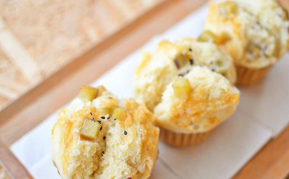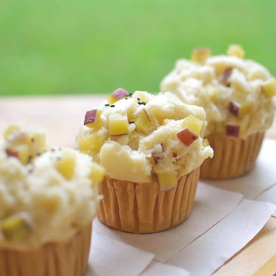 四角く切られたさつまいもがゴロゴロ入った、秋におすすめの絶品蒸しぱん!定番のプレーン生地や、ほうじ茶、黒糖、チーズなどとも相性が良いさつまいも。ぜひ全種類制覇してみてください♪さつまいも蒸しぱんは、2025年11月下旬まで販売されています。
