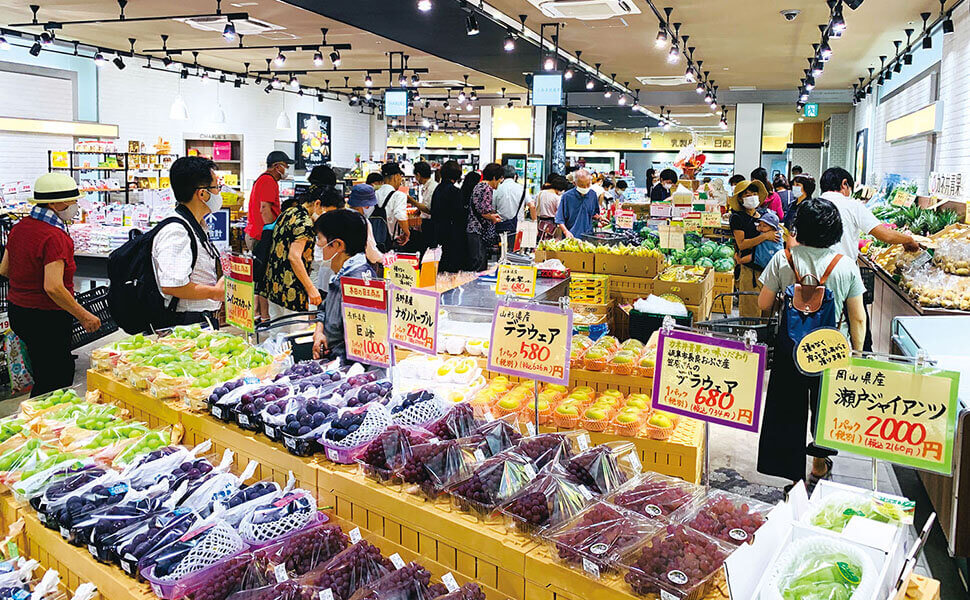 会社が厳選する野菜、果物を販売しており、特にアクティブG店は藤井社長直々のこだわり・イチオシ商品が並び、大勢の買い物客で賑わっています。
