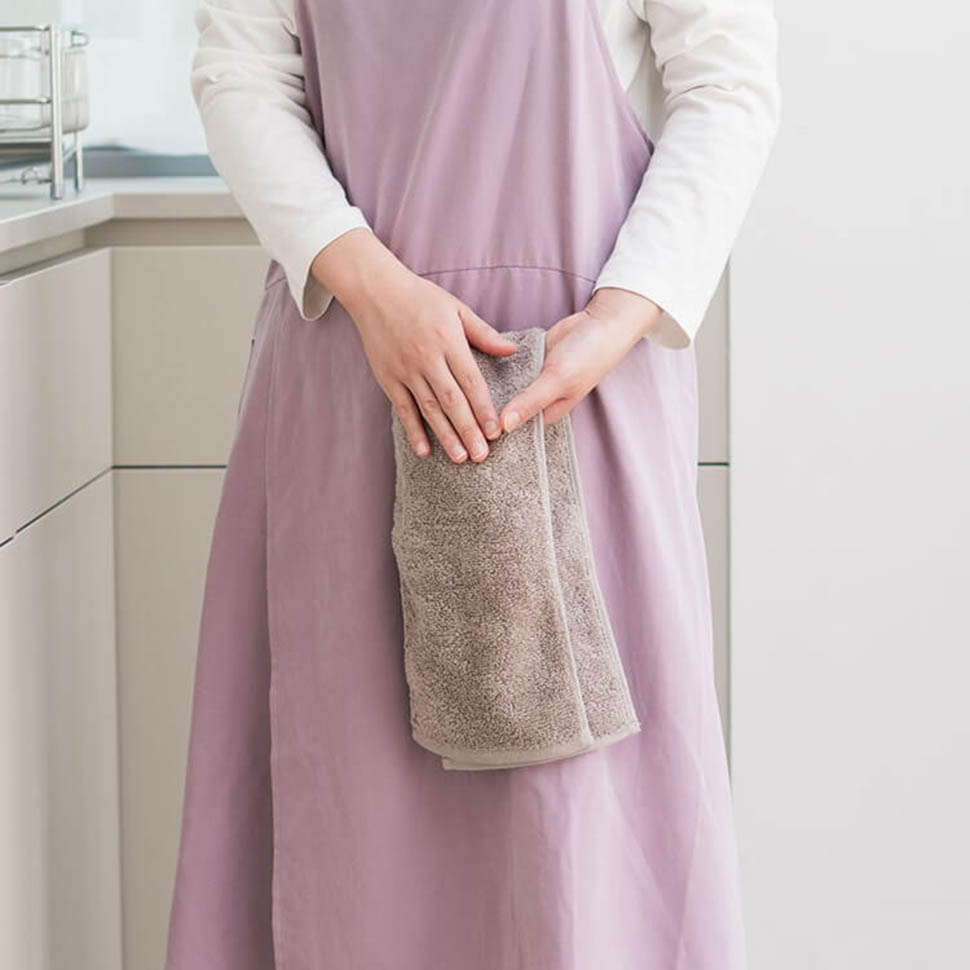 折りたたまなくてもタオルバーにそのまま掛けられるサイズのタオル。ありそうでなかった「ちょうどいい」巾と長さを実現した人気アイテムです。空気を通しやすい糸と構造で乾きやすさも抜群!