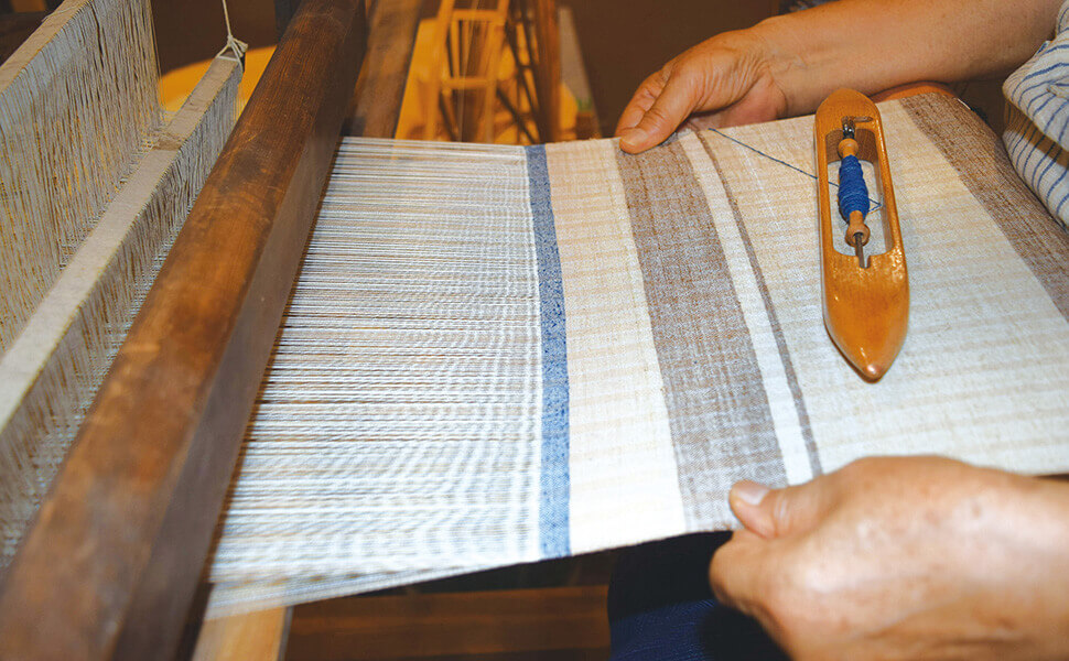 機織り機で織った美濃縞の布生地。(©️SAKURA編集部)