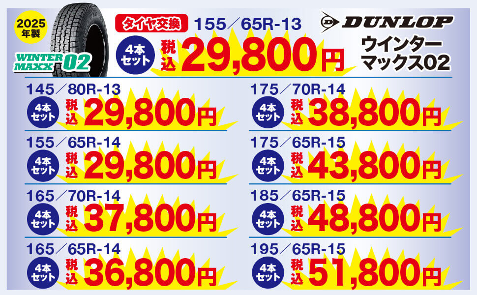 タイヤ交換が4本セットでこの価格!!