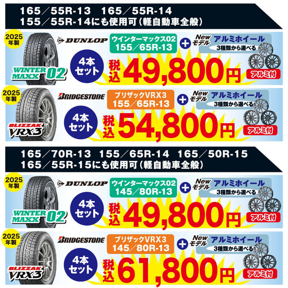 タイヤ&アルミセットご購入の方 下取キャンペーン中!!