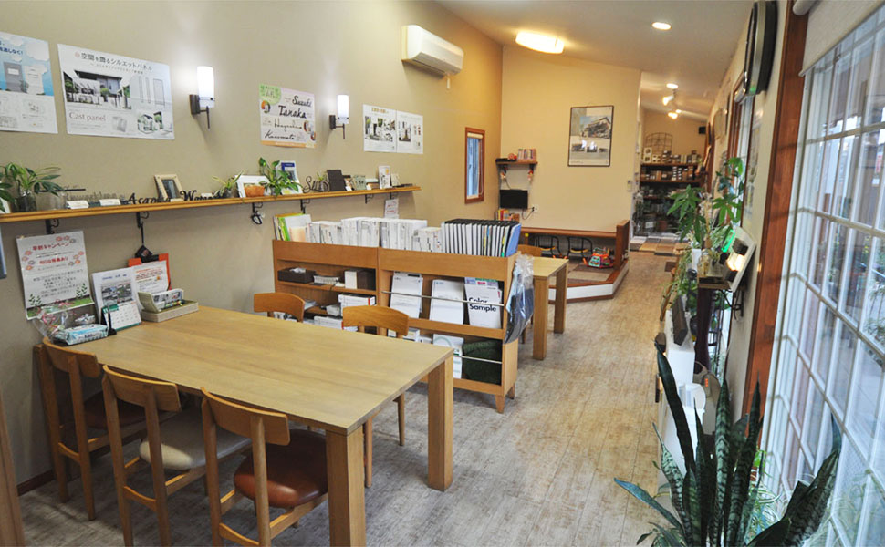 緑豊かな植木や彩りの花々に囲まれた展示場は、明るい日差しが差し込み、温かみのある優しい雰囲気が落ち着きます。店内と店舗前に多数のサンプル商品を展示しているので、仕上がりのイメージがしやすいと好評です。またキッズルーム完備なので、小さなお子様連れのファミリーには嬉しいですね♡