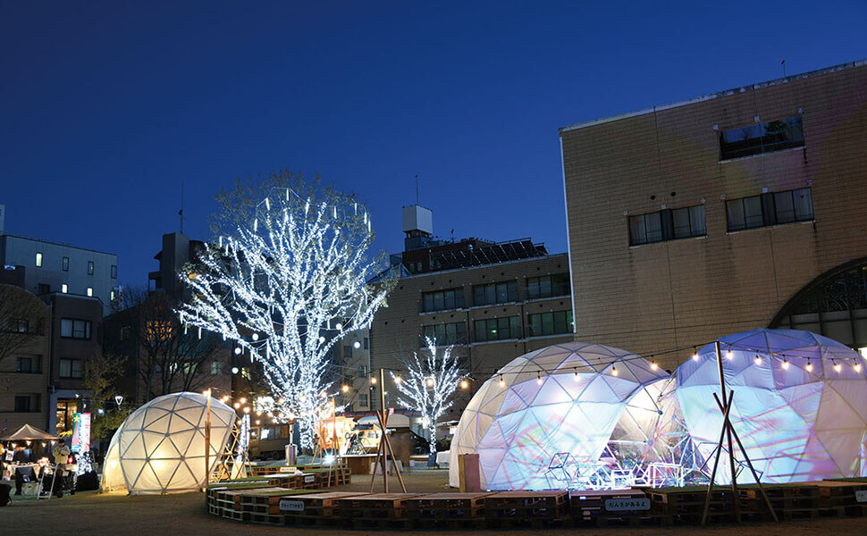 金公園をミュージアムに見立て、3つのドーム+回廊型空間で、アート、飲食、マーケットが楽しめます。
