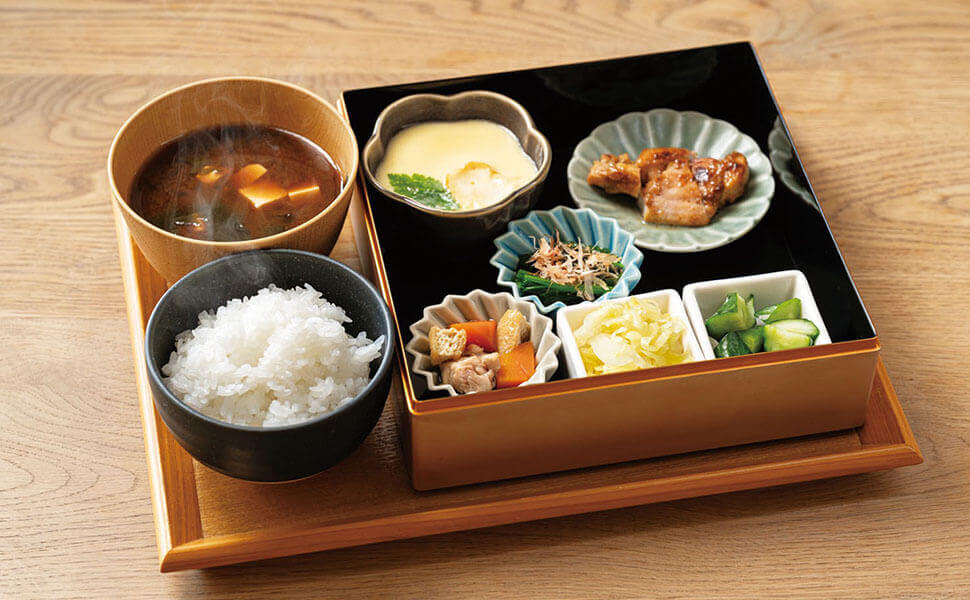 ご飯・味噌汁・茶碗蒸し・小鉢など