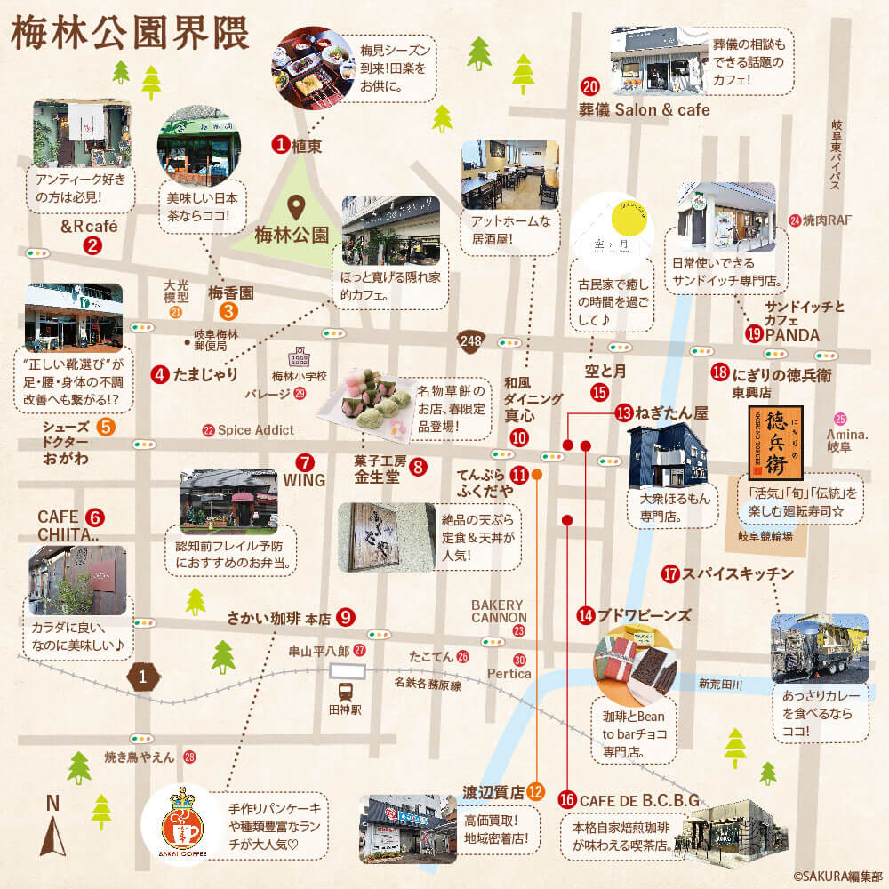 岐阜起点『わがまち図鑑 まちあるきMAP』 第199回目は梅林公園界隈をご紹介!長年地元民に愛され続けている名店の宝庫を、咲楽編集部がご紹介します。
