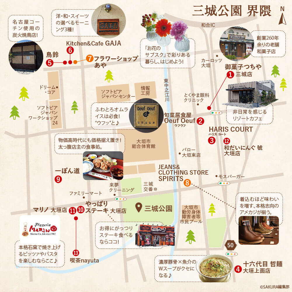 大垣起点『わがまち図鑑 まちあるきMAP』 第175回目は三城公園界隈をご紹介!自然を感じながらのんびり公園散策しよう。