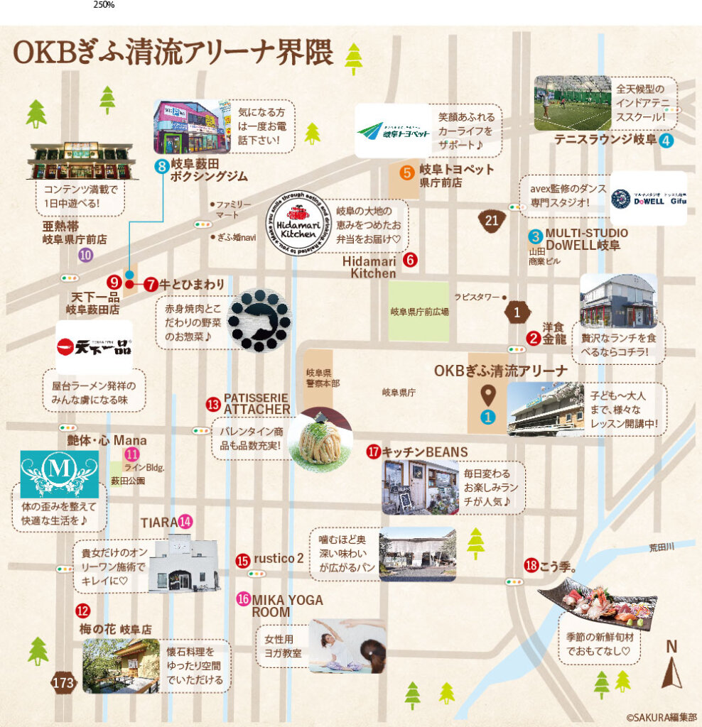 岐阜起点『わがまち図鑑 まちあるきMAP』 第151回目はOKBぎふ清流アリーナ界隈をご紹介!スポーツやイベントの帰りに周辺を歩いてみよう。