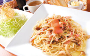 暖かい雰囲気のカフェで提供されるこだわりの日替わりパスタが大好評!ワンコインランチでは、そんなパスタとサラダがセットでボリューム感◎。大満足なモーニングも。