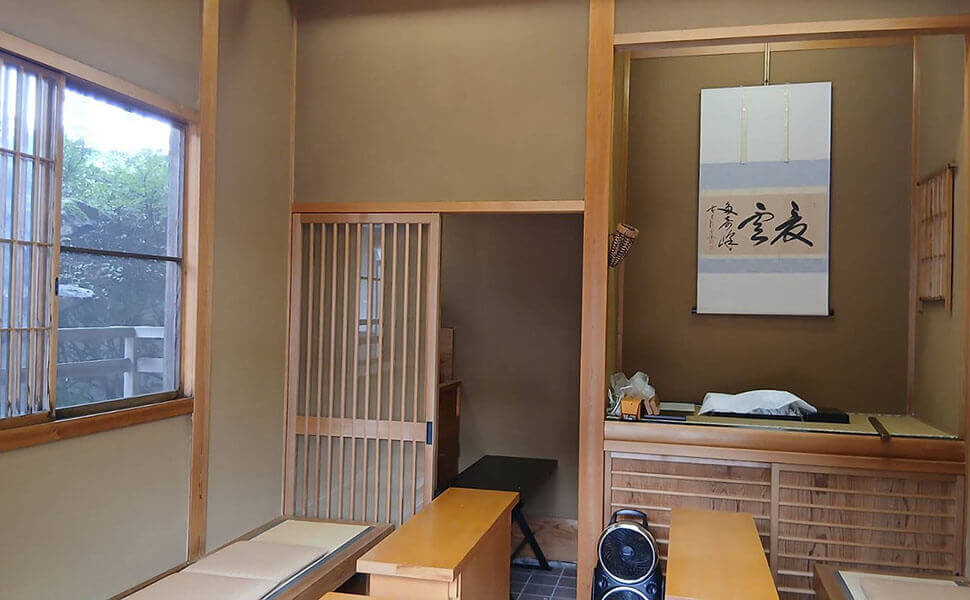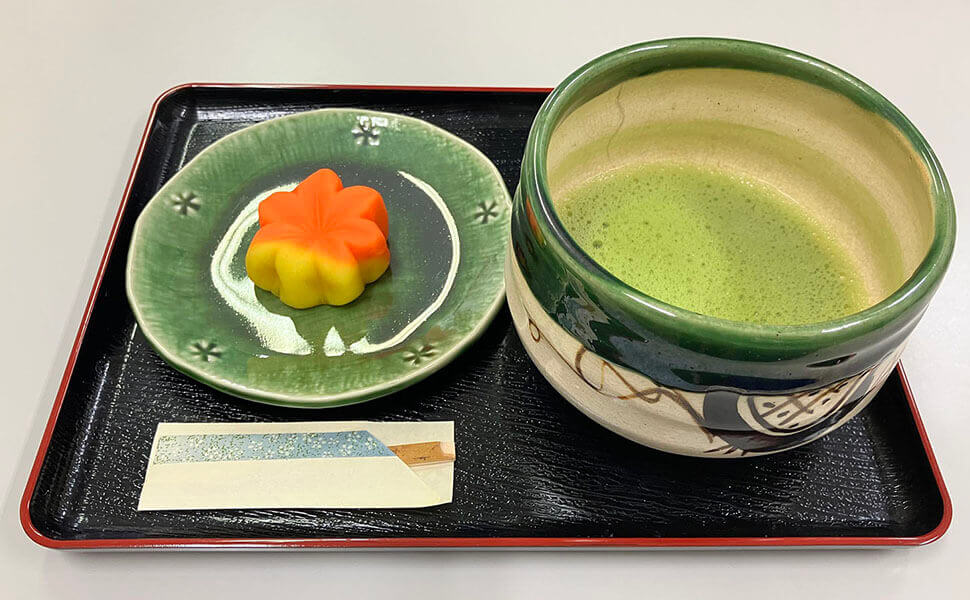 古田織部生誕の地に因んで、常設された立礼茶室「左介庵」や野点で、お抹茶を味わうことができます。織部模様の茶碗でお抹茶を愉しみつつ、織部釉の美しさに触れてみませんか?