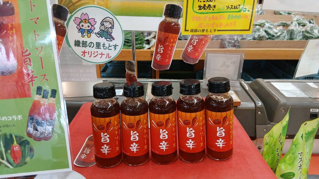 本巣産トマト「大熊農園」のトマトジュースと徳山唐辛子を使用した万能ソース。コロッケなどの揚げ物や生春巻き、サラダなど相性抜群!