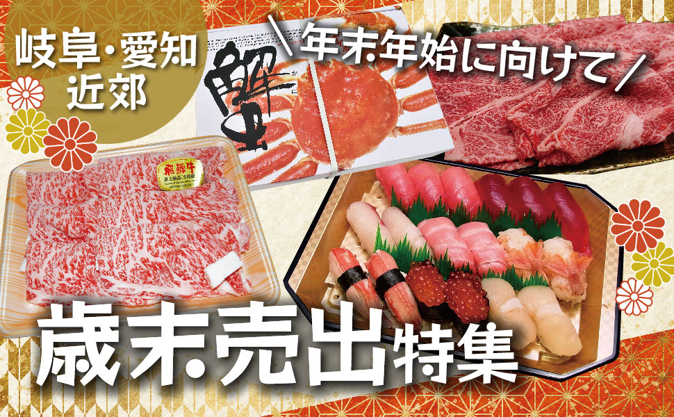 年末年始の準備は進んでいますか?新鮮な旬の食材から、家族が集まる食卓を彩るごちそう、年末年始に欠かせない品まで!蟹やお肉、お寿司、おせち食材、新鮮野菜など、おすすめの商品を厳選してご紹介します。岐阜・愛知近郊の歳末の売出情報は要チェック!