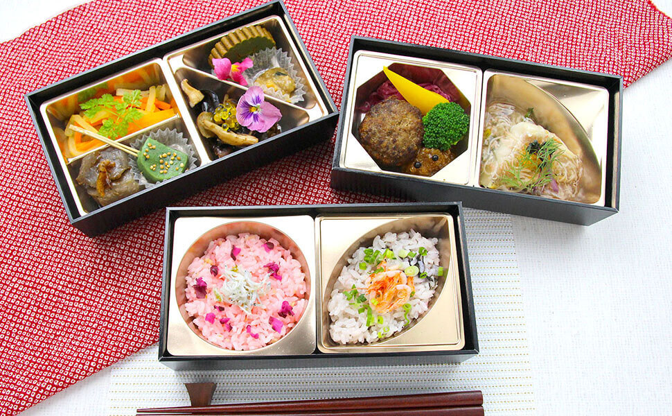 「晴れの日の、となりに。」という理念のもと、ホテル出身シェフの技術とフレンチの技法を取り入れた繊細な仕立てのお弁当。桜えび飯や和牛ハンバーグ、川根茶のスープなど、華やかでありながらどこかほっとする味わいが魅力です。
