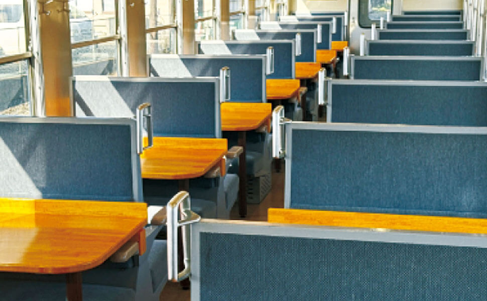 大井川流域の豊かな景色・静岡の「美味しい」が詰まったお料理・人の温もりが折り重なる特別な食堂車です。