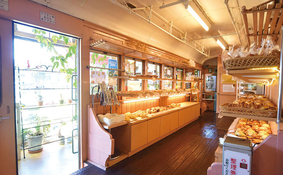 『歩絵夢(ポエム)』の代名詞といえば、“電車の中のパン屋さん”。店舗の中には、まさかの廃線となった電車の車両が1両…!どういうこと!?っと一瞬頭の中がストップするようなインパクトあるキーワードですよね。