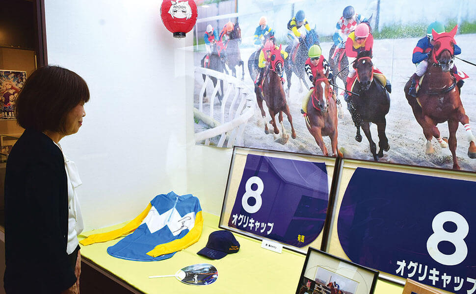 オグリ、ラブミーなど名馬のグッズが並ぶ!ファン垂涎の展示