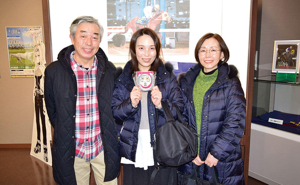 オグリキャップを主人公にした人気アニメ「ウマ娘シンデレラグレイ」のキャラクターパネルでは記念撮影を楽しんでいました。