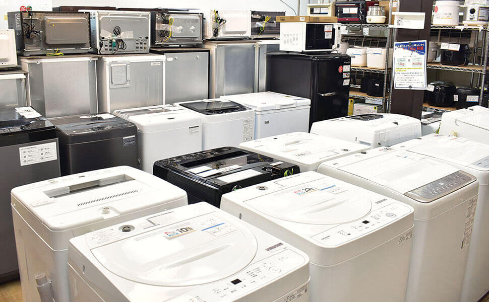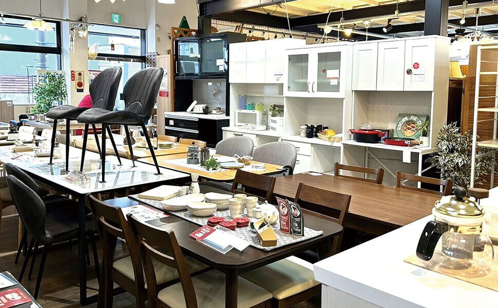 店内は2階建て。1階にはテレビやソファー、キッチン用品、家電製品などがあり、2階にはビンテージ・アンティーク家具や雑貨がずらりと並びます。店内は見て回るだけでも楽しい発見がいっぱい。買取サービスも行っているので、大掃除の後などの強い味方。売りたい時も買いたい時も頼りになる地域のパートナーです。