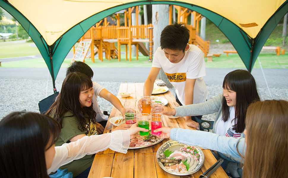 豊かな自然に囲まれながら絶品のお肉を手ぶらで味わえ、アスレチックでも遊べるという魅力たっぷりの『里山BBQ』。幹事さんやパパ・ママにとって、BBQの最大の敵「天候」も、しっかりとした屋根が完備されているため、梅雨の時期や急な天候不良でも予定を変更する必要がありません。この「天気に左右されない安心感」も好評で、家族連れや若者のグループだけでなく、スケジュールをずらせない会社のイベントなどにも多く利用されています。