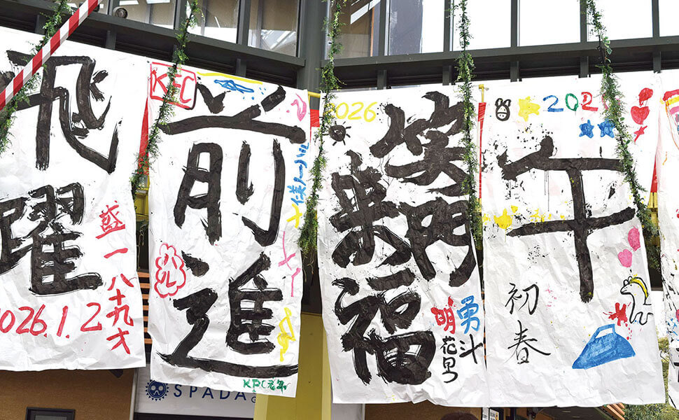 半紙での書き初め体験もあり、参加者は新年の抱負などを記し、決意を新たにしました。