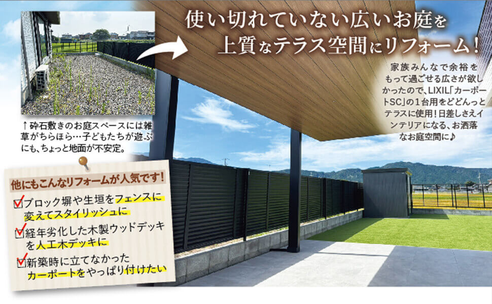 ライフスタイルの変化に合わせたリフォーム外構も好評受付中!展示場へ、お気軽に遊びにきてください♪