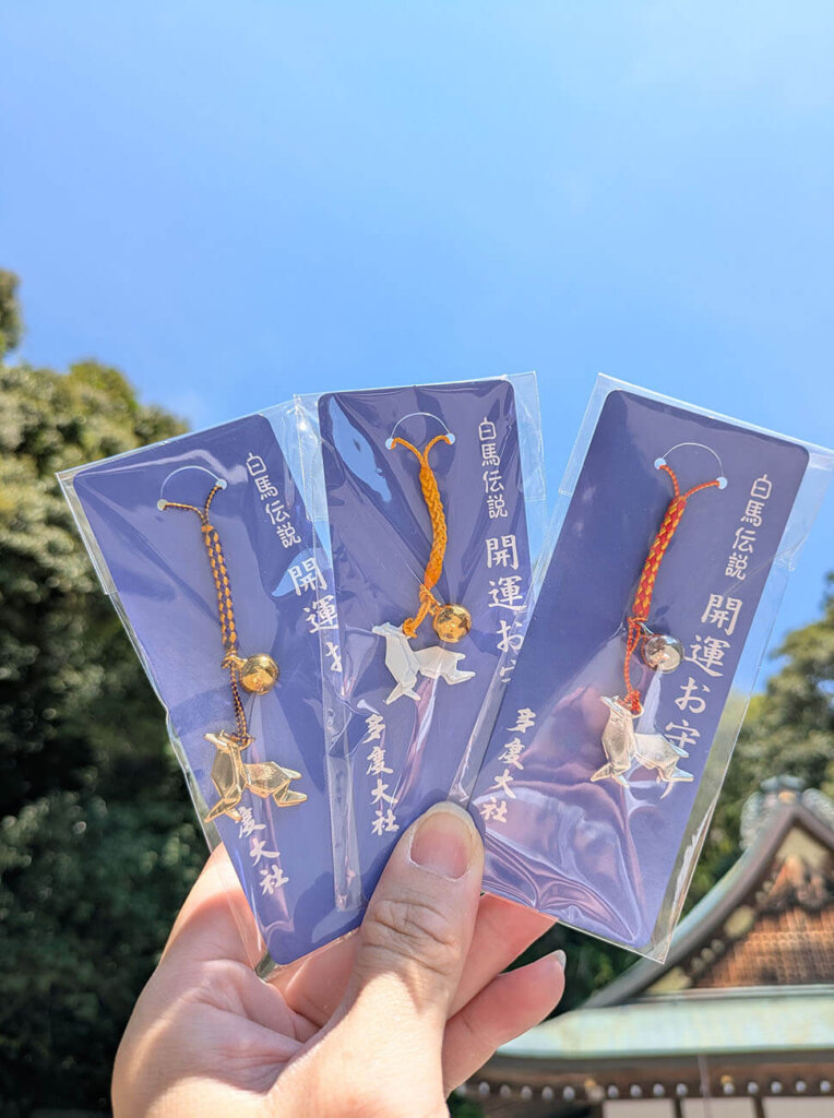 多度大社は、天照大御神(あまてらすおおみかみ)の皇子である天津彦根命(あまつひこねのみこと)を主祭神とし、さらに製鉄・鍛冶・火の神である天目一箇命(あまのめひとつかのみこと)も祀っています。九頭の馬が描かれた縁起の良いお守りがあり、家内安全や商売繁盛、厄除けなど様々な願い事の成就をサポートしてくれると人気です。