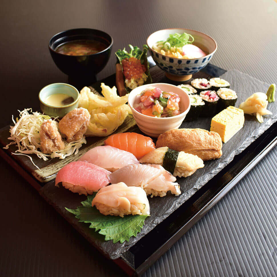 鮨 ささめ【我が家のようにくつろげるお寿司屋さん ランチ利用も宴会での利用も大人気!!】 人気のランチはにぎり寿司7カン、揚げ物、小鉢、サラダなどデザート付きでボリューム満... -