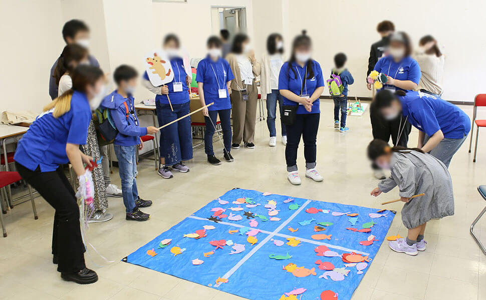 子どもたちがゲームで学生たちとふれあう(画像提供:東海学院学・短期大学部)