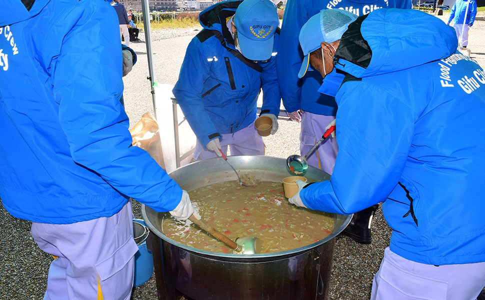 長良水防団員が豚汁200人分を作り、来場者に振る舞った。(©️SAKURA編集部)