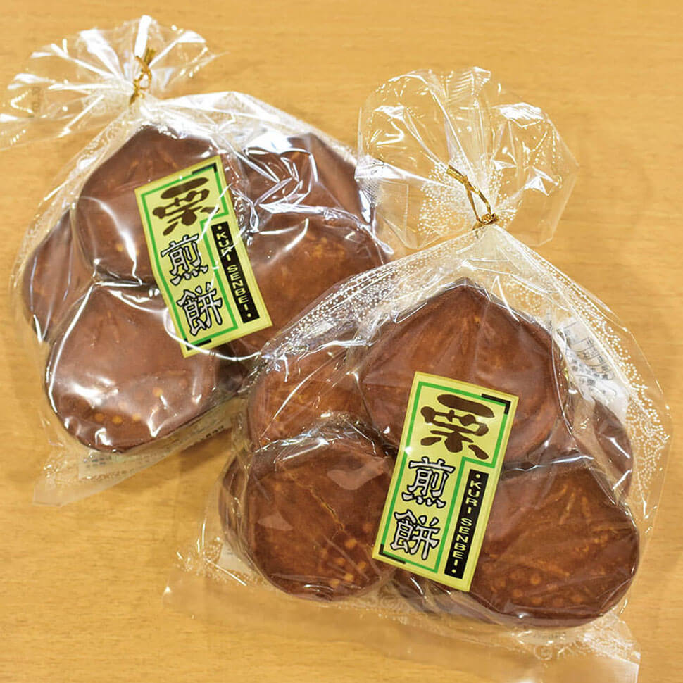 お茶うけにもぴったりな栗の形をした「栗煎餅」は、優しい甘さとちょっと固い食感がくせになる、どこか懐かしさも感じる、人気商品です。