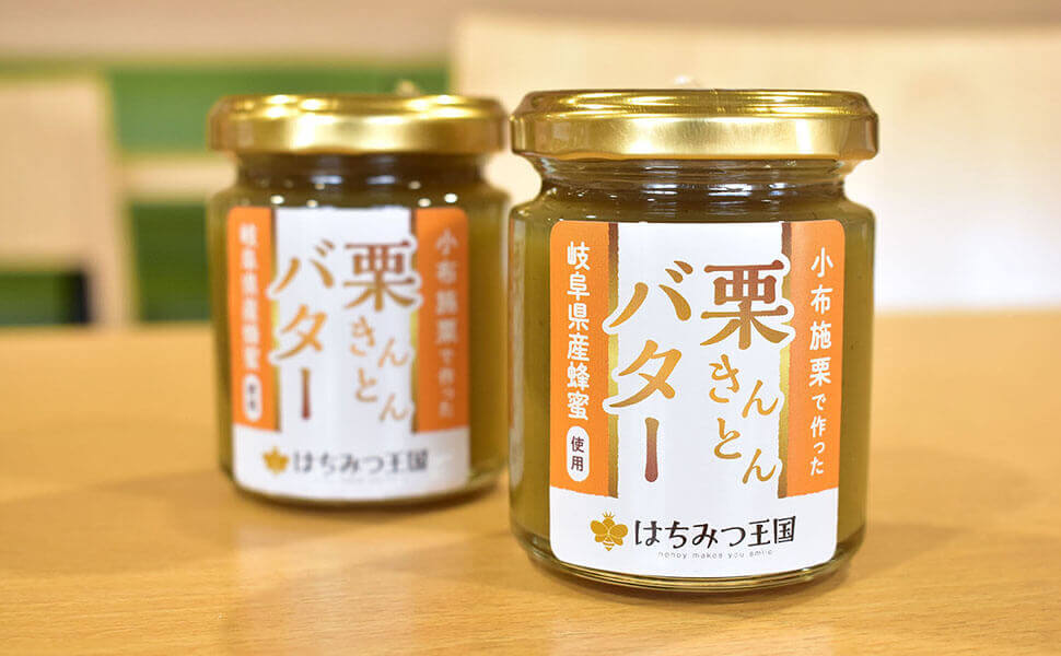 岐阜県産はちみつ、国産小布施栗、国産バターを使用している「栗きんとんバター」。合成保存料、着色料、香料を一切使用せず、栗本来の奄美とはちみつの香り、バターのコクを贅沢に堪能できる商品です。食パンやお餅との相性も抜群なので、お好みでアレンジして食べてみてください。