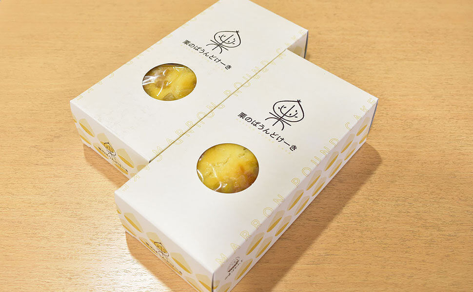 ティータイムにもおすすめな「栗のぱうんどけーき」。栗がゴロゴロ入っていてしっとり食感で絶品!手土産にも喜ばれる商品です。